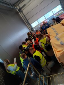 Bei einem spannenden Rundgang durch die Firma konnten wir sehen, wie die großen Waschmaschinen arbeiten und welche Mengen an Wäsche dort täglich gereinigt werden. Besonders beeindruckend war die Waschstraße: Uns wurde genau erklärt und gezeigt, wie sie aufgebaut ist und wie die einzelnen Schritte automatisch ablaufen.